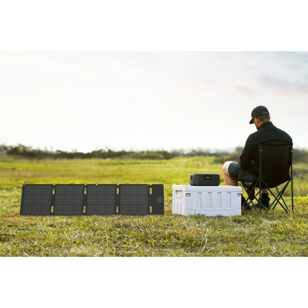 Dobíjení se 110W solárním panelem trvá 2,6 hodiny. Přenosný 45W panel typu C lze složit do velikosti notebooku.